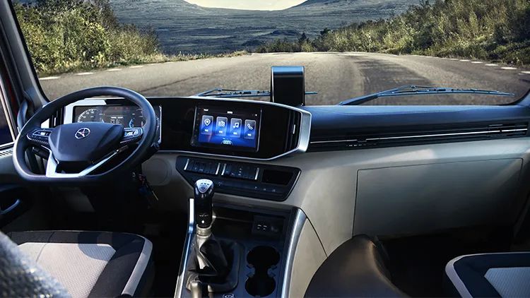 多功能座椅标配腰托调节、速降等功能,减少驾驶疲惫感。超强隔振、降噪地毯、双层密封门窗,加上宽大卧铺,让运输途中的精力恢复事半功倍。触控大屏和四方位影像给卡友的运输生活增添了不少色彩。