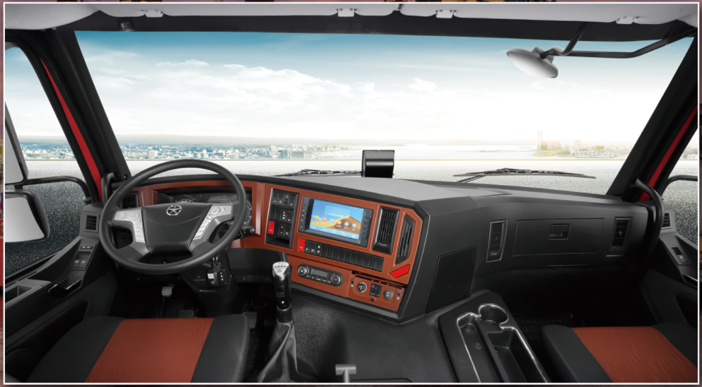 整车可配备375/350马力发动机,12档/9档变速箱,3.7/4.11的速比,保证了优质、可靠的产品品质,550L的大油箱可满足运输工况。