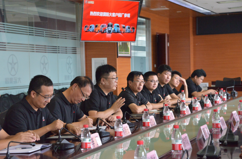 参观完重卡车间及检测中心后,重卡营销中心组织营销支持部、重卡售后服务部、重卡售后配件部、技术管理部等相关部门负责人与客户面对面进行交流座谈。