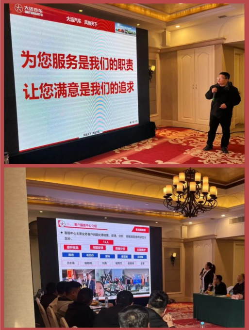 首先是业务汇报,由重卡售后配件销售科主管王振、重卡售后服务部客服中心主管马少莉向参会人员分别对现有配件和服务板块的工作成果做详细汇报。