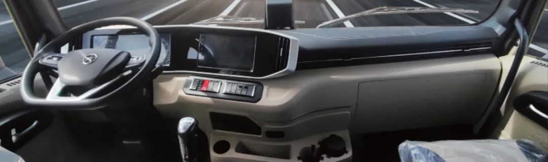 美高梅官方网站V7H燃气重卡驾驶室内采用大范围软性包覆、悬浮式大尺寸液晶仪表、中控一体化设计,“一” 字整体贯穿式出风口,拥有“轿车化”驾驶舱布局,各类开关触手可及,营造出极致科技感和强烈的视觉冲击。全新定制气囊座椅,有腰托、坐垫调节、阻尼、速降功能,带卡友体验行政级商务座驾;座椅到中控台的直线距离有300mm 而且座椅还可以翻转,腿部活动空间大,日常生活更舒适。
