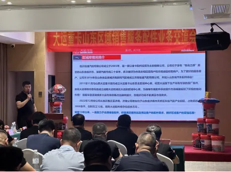 随后,由山东中心库孙呈强向参会嘉宾介绍了中心库的发展历程、经营场景及公司实力,并且宣贯了本次配件产品的促销政策。