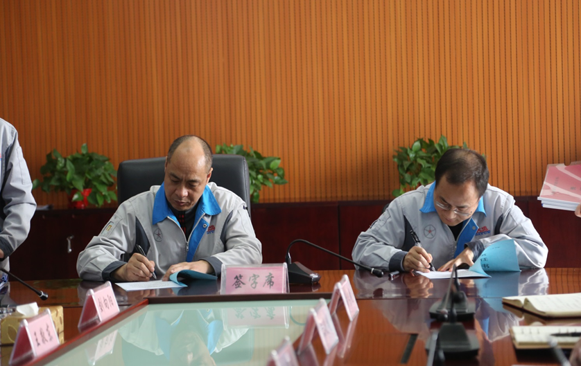 公司安委会主任陈澔利与各部门负责人签订安全生产、设备能源管理相关责任书